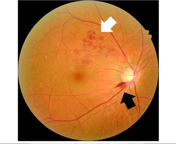 生活習慣病(高血圧症、脂質異常症、糖尿病)や脱水などが原因で、網膜の静脈が詰まることがあります。詰まった静脈の血液が流れず、あふれて出血するとともに、黄斑(網膜の中心部分)に浮腫(むくみ)が生じて、視力が著しく低下します。