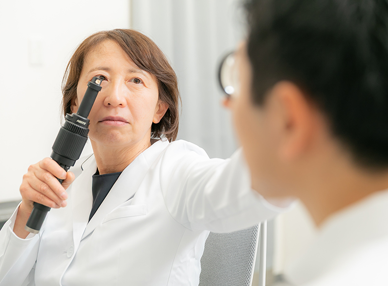 まずは症状について詳しくお伺いし、必要に応じて視力・視野検査、顕微鏡検査、眼底検査、血液検査などを実施します。診断結果に基づき、病気の原因や治療方針について丁寧にご説明いたします。