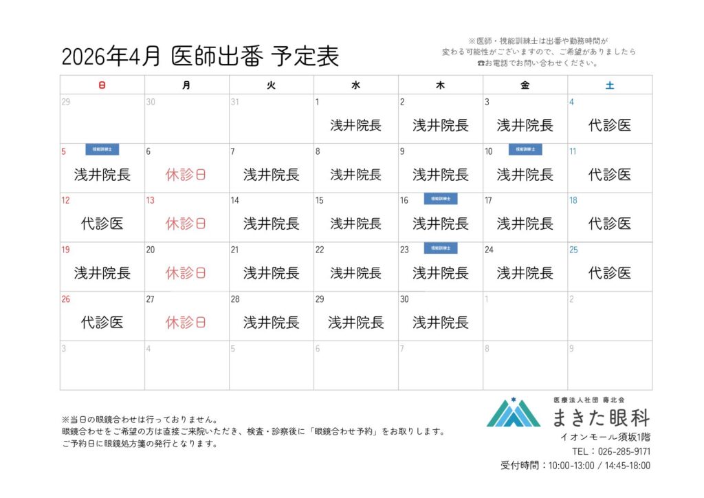 コンタクトレンズは高度管理医療機器です。安全にお使いいただくため、定期的な検診と、異常を感じた際の早めの受診をお願いしています。
